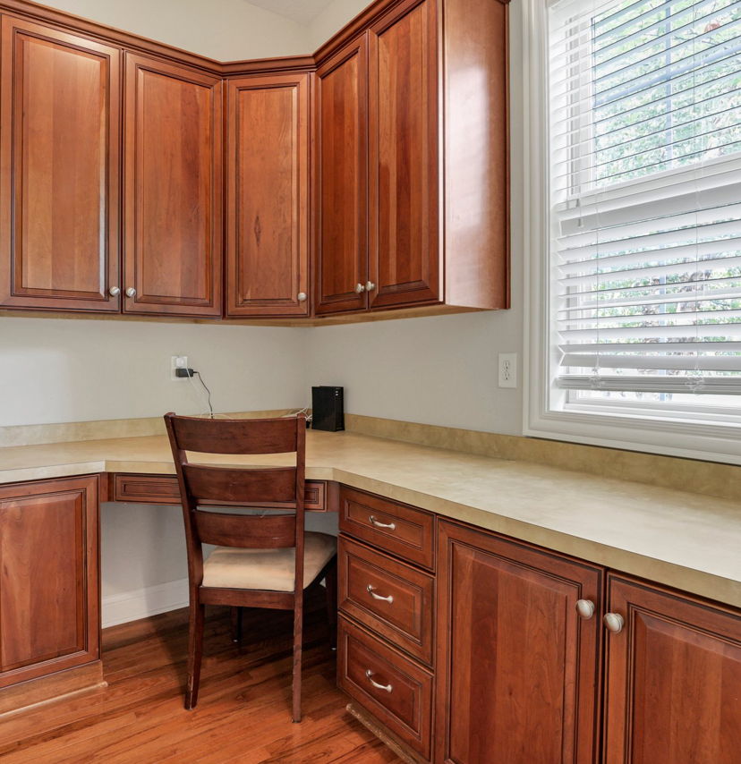Enjoy the cook's kitchen with 2nd office space, a butler's pantry, GE stainless steel appliances, custom cabinetry, granite countertops, breakfast bar plus dinette area, a large pantry and stylish tile backsplash that enhances the kitchen's functionality and aesthetic appeal.